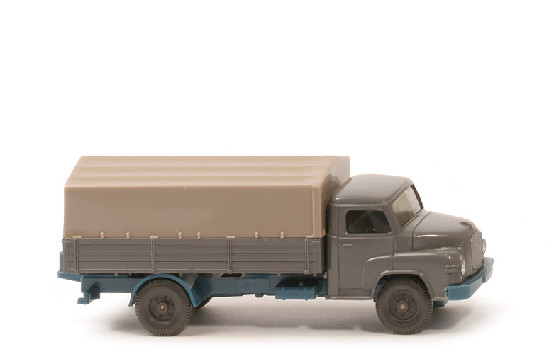 Modellversion | Typ 3 - Chassis neu, Pritsche neu | Farbe Kabine | basaltgrau | Verglasung | getönt | Grill | silbern eingesetzt | Bemalung | nur Scheinwerfer | Inneneinrichtung | glatte Bank | Haltenasen Kabine | mit | Chassis Art | Typ 3 | Bodenprägung | WM, GERMANY, 41 | Bereich Kardan hinten | geschlossen | Rücklichtstange | mit | Pritschenabstützung | Stege | Arretierung Haltenasen | mit | Chassisfarbe | azurblau | Pritsche Art | fein strukturiert | Pritschenseiten | gerade, feine Struktur | Pritschenunterseite | 6 schmale Quertraversen | Pritsche Farbe | basaltgrau | Pritscheneinlage | silbern | Bemalung Rückleuchten | ohne | Plane | ca. braunelfenbein | Räder | 6-Loch |