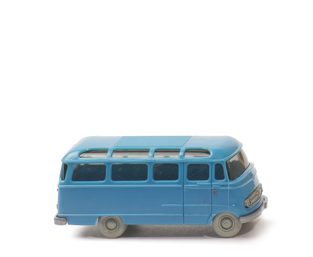 Farbe | lichtblau | Rückleuchten | gering erhaben | Grill | silbern eingesetzt | Verglasung | leicht getönt | Inneneinrichtung | ohne | Chassisfarbe | silbern | Bodenprägung | WM | Bemalung Scheinwerfer | ohne | Bemalung Blinker seitlich | rot | Bemalung Rückleuchten | rot | Bemalung Kennzeichen hinten | silber | Räder Typ | 8 mm, Nabe gewölbt | Räder Farbe | hellgrau |