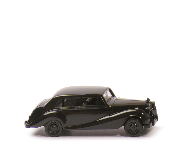 Farbe | schwarz | Grill | schwarz eingesetzt | Inneneinrichtung | schwarz | Lenkrad | integriert | Bemalung Rückleuchten | ohne | Chassisfarbe | schwarz | Bodenprägung | Rolls-Royce 1951 WIKING Berlin-W | Räder | 9 mm, schwarz | Radkappen | eingesetzt, schwarz |