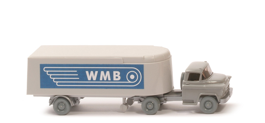 | Zugmaschine | Farbe Kabine | ca. staubgrau | Farbe Chassis | silbern | Sattelpfanne | alt, mit Steg, für großen KöBo, ähnlich | Zughaken | mit | Bodenprägung | neues WIKING-Logo, Germany | Räder Typ | 10 mm, neuere Ausführung | Räder Farbe | ca. staubgrau | | Auflieger | Farbe Oberteil | ca. lichtgrau | Farbe Unterteil | ca. lichtgrau | Radlauf | mit Kotflügel silber | Bodenprägung | neues WIKING-Logo | Königsbolzen | stark | Rückleuchten | mit | Dach | mattiert | Aufkleber | eckig | Räder Typ | 10 mm, neuere Ausführung | Räder Farbe | ca. staubgrau |