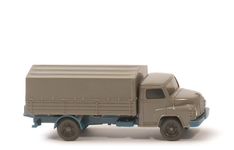 Modellversion | Typ 3 - Chassis neu, Pritsche neu | Farbe Kabine | betongrau | Verglasung | getönt | Grill | silbern eingesetzt | Bemalung | nur Scheinwerfer | Inneneinrichtung | glatte Bank | Haltenasen Kabine | mit | Chassis Art | Typ 3 | Bodenprägung | WM, GERMANY, 41 | Bereich Kardan hinten | geschlossen | Rücklichtstange | mit | Pritschenabstützung | Stege | Arretierung Haltenasen | mit | Chassisfarbe | azurblau | Pritsche Art | fein strukturiert | Pritschenseiten | gerade, feine Struktur | Pritschenunterseite | 6 schmale Quertraversen | Pritsche Farbe | basaltgrau | Pritscheneinlage | silbern | Bemalung Rückleuchten | ohne | Räder | 6-Loch |