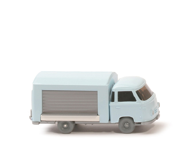 Kabine | weißblau | Verglasung | getönt | Inneneinrichtung | ohne | Bedruckung | Scheinwerfer silbern | Chassis | silbern | Zughaken | integriert | Aufbau | weiß | Rolltüren | silbern | Auslagen | weiß | Tresenkante, Innenbereich | weiß | Bedruckung Rückleuchten | rot | Aufkleber | blaue Kanne auf weißem Grund | Aufkleber Art | Papieraufkleber | Räder | 8 mm, ca. staubgrau |