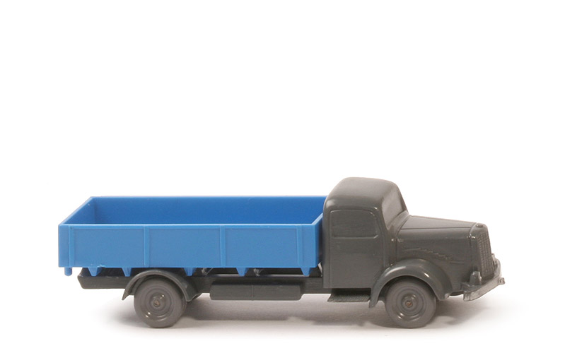 Achsen | Rollachser | Farbe Kabine u. Chassis | dunkelbasaltgrau | Verstärkung Trittbretter | ohne | Bemalung Kabine | Scheinwerfer, Stoßstange | Version Chassis | Version 1a | Chassis Farbe | dunkelbasaltgrau | Bodenprägung | WM im Kreis | Pritsche | Seiten glatt | Farbe Pritsche | himmelblau | Zughaken | nach unten | Zapfen | Rundzapfen | Kennzeichen | bemalt silbern | Befestigung Pritsche | (schlecht) geklebt | Räder | 10mm, ohne Profil |