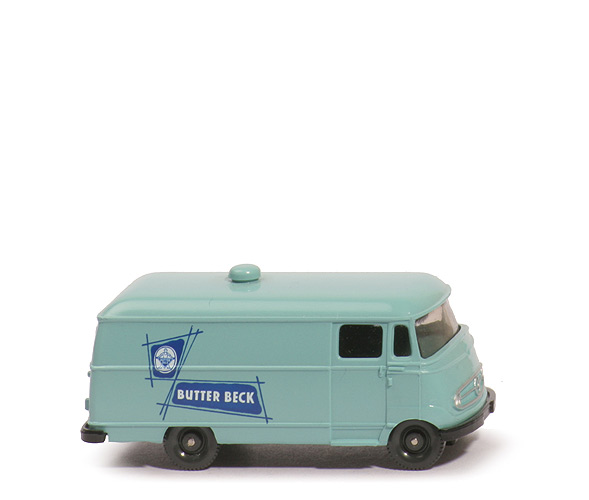 Farbe | "pastelltürkis" | Grill | integriert | Dachlüfter | eingesteckt | Rückleuchten | stark erhaben | Verglasung | leicht getönt | Inneneinrichtung | ohne | Chassisfarbe | schwarz | Bodenprägung | neues WIKING-Logo, Germany | Bedruckung | Scheinwerfer, Grillumrandung, Stern silbern | Beschriftung | Butter Beck (s. Foto) | Beschriftung Art | Druck | Räder Typ | 8 mm, Nabe flach | Räder Farbe | anthrazit |