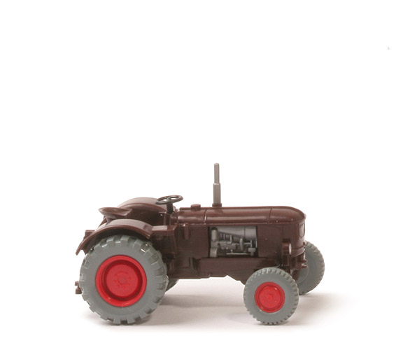 Aufbau | schokobraun | Vorderachsportal | schokobraun | Unterbau | schokobraun | BP hinter Vorderachse | Germany | Fahrersitz | schokobraun | Scheinwerfer | groß (ca. 2,5 mm), unbemalt | Motorblock | silbern eingesetzt | Lenkrad Typ | schwarz, 4-speichig | Lenkrad Position | waagerecht | Fahrer | ohne | Zughaken | klein | Rückleuchten | unbemalt | Kamin | silbern, eingesetzt | Dachhalterungen auf Kotflügel | ohne | Dach | ohne | Vorderräder | 11 mm, ca. staubgrau | Felgen vorne | 6-Loch, rot, Typ Hinterrad, Profil grob | Hinterräder | 17 mm ca. staubgrau | Felgen hinten | rot |