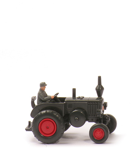 Aufbau | anthrazit | Unterbau-Teil m. Scheinwerfern | anthrazit | Ansaugrohr | integriert kurz | Auspuffrohr | anthrazit | Scheinwerfer | gesilbert | Fahrersitz-Teil m. Lenkstange | anthrazit | Lenkrad | schwarz, 4 Speichen | Fahrer | ca. staubgrau, Gummi | Bodenprägung | WIKING Germany | Zughaken | grazil | Zughakenattrappe | ohne | Dach | ohne | Räder Farbe | anthrazit | Räder vorne | zweiteilig, Felgen rot | Räder hinten | zweiteilig, Felgen rot | Frontdruck | Lanz Bulldog rot/gelb |