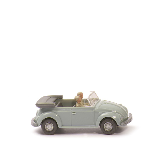 Farbe Karosserie | hellblaugrau | Frontscheibe | klarer Kunststoff | Figuren | Typ 2, ca. hellelfenbein | Lenkrad | separat eingesetzt, 3-speichig | Sitze | basaltgrau | Verdeck | basaltgrau | Bemalung Scheinwerfer | silber | Bemalung Rückleuchten | ohne | Chassis | Typ 8, silbern | Bodenprägung | VW 1300 WIKING Germany | Stoßstangen | glatt - ohne Hörner | Achshalterungen | offen | Räder | Riffelkappe, gesilbert |