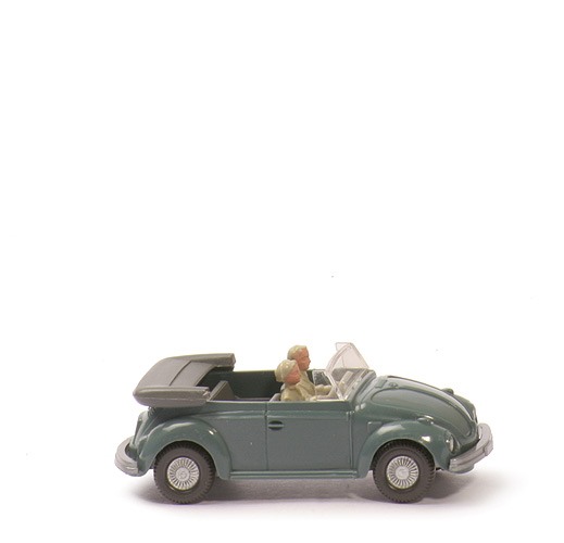 Farbe Karosserie | blaugrau | Frontscheibe | klarer Kunststoff | Figuren | Typ 2, ca. hellelfenbein | Lenkrad | separat eingesetzt, 3-speichig | Sitze | basaltgrau | Verdeck | basaltgrau | Bemalung Scheinwerfer | silber | Bemalung Rückleuchten | ohne | Chassis | Typ 8, silbern | Bodenprägung | VW 1300 WIKING Germany | Stoßstangen | glatt - ohne Hörner | Achshalterungen | offen | Räder | Riffelkappe, gesilbert |