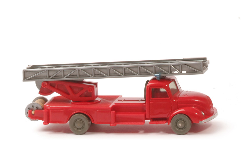 Farbe Kabine | rot | Version Kabine | Typ 4 | Stoßstange | gerade | Kabinenboden | mit Schlitz | Blinker | ohne | Verglasung | getönt | Dach | glatt mit Blaulichtleiste | Bemalung | Scheinwerfer, Stoßstange silbern | Reserverad | hinter Kabine | Chassis Farbe | rot | Chassis Art | Version 2 | Achshalterungen | geschlossen | Chassis Bodenprägung | WM (ohne Kreis) | Aufbau Farbe | rot | Aufbau Variante | Trittfläche Struktur | Führungsstege für Chassis | ohne | Drehschemel | Version 2, rot | Leiter | dreiteilig, silbern | Schlauchhaspel Typ | neu | Schlauchhaspel Seiten | silber | Schlauch | hellbeige | Räder | 10 mm, neuere Version |