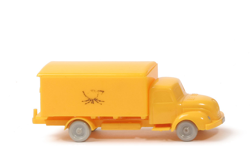 Etwas reduzierter Zustand des Horns. Die Gelbtöne von Kabine/Chassis und Koffer weichen ab. |