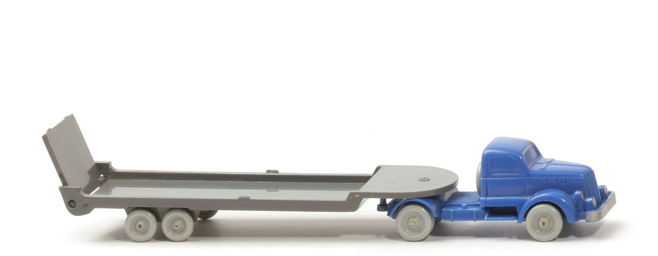 Achsen | Rollachser | | Zugmaschine | Farbe Kabine | ultramarin | Farbe Chassis | ultramarin | Bemalung | Scheinwerfer, Kennzeichen silbern | Sattelpfanne | eingesetzt, in Chassisfarbe | Chassis | Version 1b | Achshalterungen | geschlossen | Bodenprägung | WM im Kreis | Reserverad | hinter Kabine | Räder | sog. Porzellanräder | | Auflieger | Achsen | Rollachser | Farbe | basaltgrau | Typ | vorn rund (Typ 1) | Seilwinde | ohne | Fläche über Drehschemel | mit Prägung WM im Kreis | Rückleuchten | ohne | Rampe | kurz | Stützen | ohne | Bodenprägung | ohne | Königsbolzen | kurz | Räder | sog. Porzellanräder |