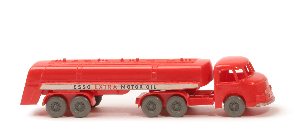 | Zugmaschine | Verglasung | ohne | Kabine Farbe | orangerot | Chassis Farbe | orangerot | Kabinenrückwand | ohne Haltenasen | Bemalung | Scheinwerfer, Stoßstange | Bodenprägung Chassis | WM ohne Kreis | vordere Auswerfermarkierung | 3 mm | hintere Auswerfermarkierung | 2 Stück | Achshalterungen | geschlossen | Sattelpfanne | integriert | Reserverad | ohne | Rückleuchten | ohne | Räder vorn | Version 5 - betongrau | Räder hinten | Version 5 - betongrau | | Auflieger | Farbe Korpus, Unterteil | orangerot | Farbe Achseinheit | orangerot | Königsbolzen | dünn, integriert | Bodenprägung Unterseite | WM im Kreis | Bodenprägung Achseinheit | ohne | Typ Achshalterung | gerade, geschlossen | Reserverad | ohne | Rückleuchten | ohne | Beschriftung Seite | Papieraufkleber | Länge / Art | 46mm / EXTRA in rot | Beschriftung Heck | Papieraufkleber | Rand | schmal | Bemalung Nummernschild | silber | Räder | Version 5 - betongrau |