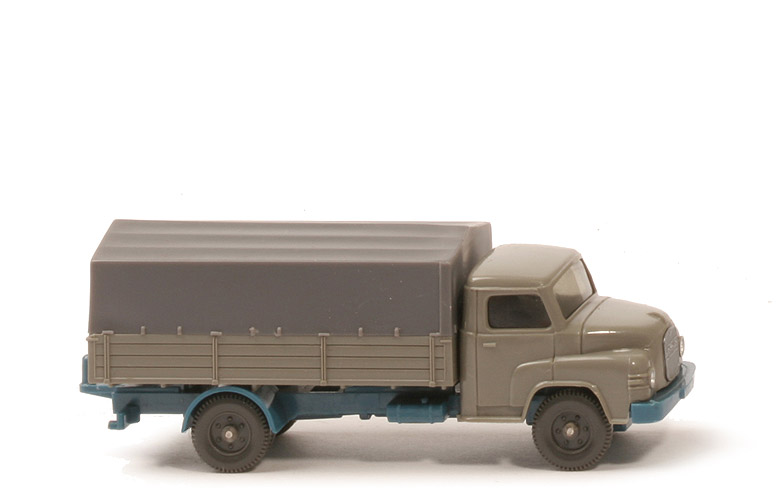 Modellversion | Typ 3 - Chassis neu, Pritsche neu | Farbe Kabine | betongrau | Verglasung | getönt | Grill | silbern eingesetzt | Bemalung | nur Scheinwerfer | Inneneinrichtung | glatte Bank | Haltenasen Kabine | mit | Chassis Art | Typ 3 | Bodenprägung | WM, GERMANY, 41 | Bereich Kardan hinten | geschlossen | Rücklichtstange | mit | Pritschenabstützung | Stege | Arretierung Haltenasen | mit | Chassisfarbe | azurblau | Pritsche Art | fein strukturiert | Pritschenseiten | gerade, feine Struktur | Pritschenunterseite | 6 schmale Quertraversen | Pritsche Farbe | basaltgrau | Pritscheneinlage | silbern | Bemalung Rückleuchten | ohne | Plane | ca. basaltgrau | Räder | 6-Loch |