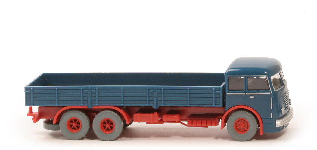 Die Farbangaben in Anführungszeichen sind in der Farbkarte von Holger Wanner nicht notiert. Die als von WIKING als "grünblau" angegebene Farbe entspricht in etwa capriblau, "olivbraun" ockerbraun. Das mit "rot" angegebene Chassis zeigt sich in einem blassem rosé mit starker Plastik-Anmutung. Die Fensterrahmen, Türgriffe und Nebenscheinwerfer sind hübsch silbern bedruckt. |