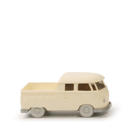 | Farbe Karosserie | ca. gelbelfenbein | | Verglasung | getönt | | Inneneinrichtung | ohne | | Chassis Ausführung | separates Bauteil | | Chassis Farbe | silbern | | Bodenprägung | neues WIKING-Logo, Germany | | Bemalung Scheinwerfer | silbern | | Bemalung VW-Emblem | ohne | | Bemalung Rückleuchten | rot | | Bemalung Kennzeichen hinten | ohne | | Räder | ca. lichtgrau, Nabe gewölbt |