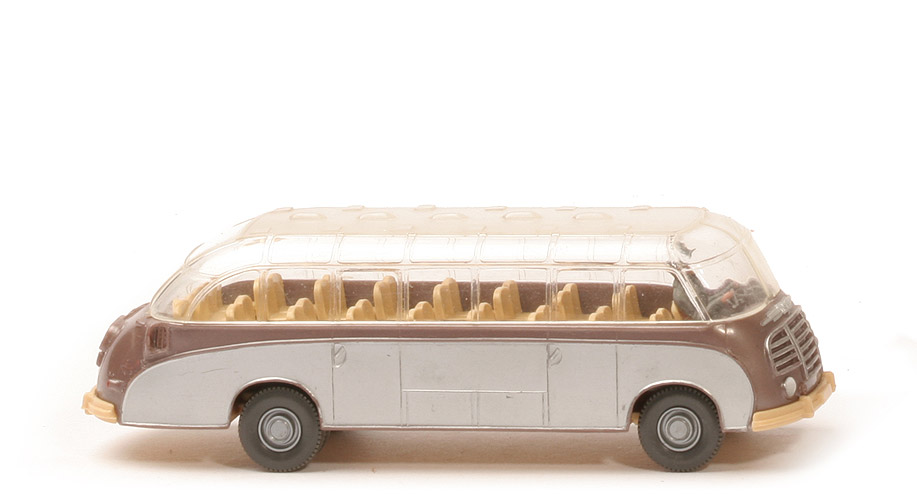 Karosserie Typ | Serie | Karosserie Farbe | braunmetallic | Schlitze für Dach | lang und breit | Armaturenbrett | trapezförmig | Gestaltung Zierline Front | mit "K", gesilbert | Boden Fahrgastraum | mit Struktur | Gestaltung Seite | Schablonierung silber | Fahrersitz Farbe | helles beige | Sitzreihen | helles beige, gesteckt | Fahrer Typ | groß, mit Mütze | Fahrer Farbe | ca. basaltgrau | Lenkrad Typ | vier Speichen | Lenkrad Farbe | anthrazit | Dach Befestigung | vormals geklebt, nun gelöst | Dach Gestaltung oben | mattiert | Dach Typ Haltenasen | lang und dünn | Chassis Farbe | helles beige | Chassis Typ | Typ 3b | Achshalterungen hierbei | offen | Bodenprägung hierbei | WM, 73, GERMANY | Bemalung Hauptscheinwerfer | silber | Bemalung Nebelscheinwerfer | ohne | Bemalung Grill und Zierlinie | silber | Bemalung Stoßstangen | ohne | Bemalung Rückleuchten | rot | Bemalung Blinker hinten | ohne | Bemalung Kennzeichen hinten | ohne | Bemalung 3 Zierlinien hinten | ohne | Bemalung Lüfter | ohne | Räder Typ | mit Radkappe, Profil fein | Räder Ausführung | anthrazit, Radkappe silbern (eingesetzt) |