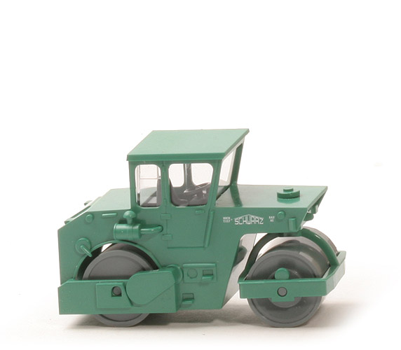 Es handelt sich um eine Straßenwalze Typ ABG Alexander 128. Ladegut auf einem Eisenbahnwagen mit Rungen von Roco (47287). |