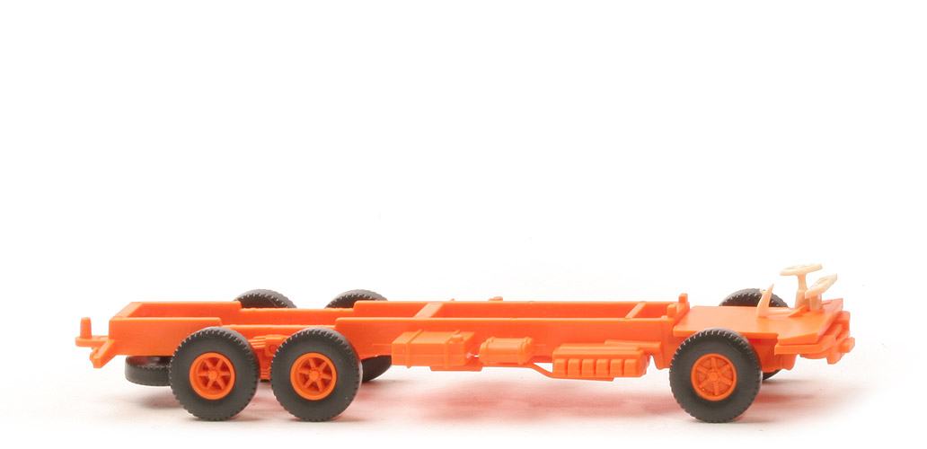 Kabine | ohne | Lenkrad | separat eingesetzt, ca. cremeweiß | Armaturenbrett | separat eingesetzt, ca. cremeweiß | Schaltknüppel | separat eingesetzt, ca. cremeweiß | Stoßstange | ohne | Pritsche | ohne | Chassis Farbe | helles rotorange | Kardanplatte | helles rotorange | Bodenprägung | neues WIKING-Logo | Kotflügel hinten | ohne | Reserverad | hinten unter Chassis | Bedruckung Rückleuchten | ohne | Räder Typ | 14 mm, Felgen eingesetzt, anthrazit | Felgen | neue Trilexfelgen, helles rotorange |