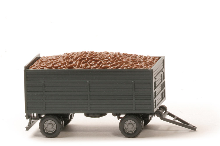 | Pritsche | Typ | Hochpritsche | Farbe | schwarzgrün | Pritscheneinlage | ohne | Bodenprägung Pritsche | neues WIKING-Logo, Germany | | Chassis | Farbe | anthrazit | Fixierung Drehschemel | per Weichzapfen | Kotflügel | ohne | Reserverad | mittig unter Chassis | Zughaken | klein, integriert | | weitere Details | Ladung | Rübeneinsatz auf 6 runden Stüzen, lehmbraun | Deichsel | anthrazit | | Räder | Typ | 11 mm, Felgen eingesetzt | Felgen | 6-Loch, silbern |