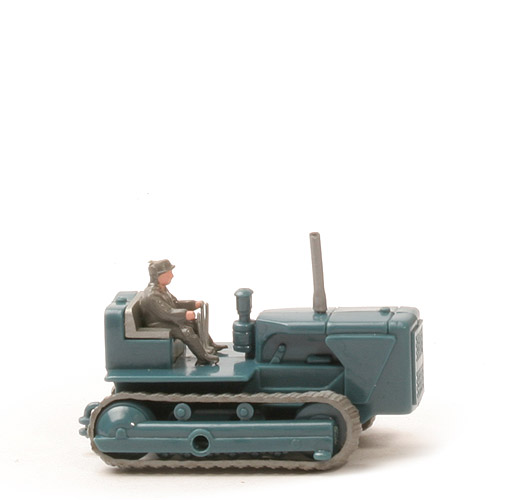 Ohne Räumschild als Raupenschlepper im Katalog 1959 als Neuheit präsentiert. Im GK nur mattgraublau und gelb notiert. |