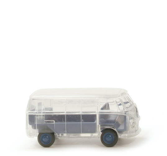 Karosserie oben | klar transparent | hier Bedruckung vorne | VW-Emblem dunkles blau | Karosserie unten | klar transparent | hier Scheinwerfer | silbern eingesetzt | hier Bedruckung Blinker vorne | ohne | hier Rückleuchten | rot bedruckt | Verglasung | getönt | Inneneinrichtung | dunkles signalblau | Stoßstange vorne | klar transparent, eingesteckt | Chassis Farbe | klar transparent | Bodenprägung | neues WIKING-Logo | Räder Typ | 8 mm, Nabe gewölbt | Räder Farbe | ca. dunkles signalblau |