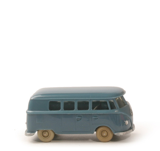Farbe Karosserie oben | mattgraublau | Farbe Karosserie unten | mattgraublau | Heckscheibe | klein | Chassis | Teil des Karosserieunterteils | Chassis Version | Typ A Nest 1 | Bodenprägung | Made in Germany, WM | Rückleuchten | gering erhaben | Mittelholm | oben gerade | Verglasung | Typ 1, getönt | Inneneinrichtung | ohne | Bemalung Scheinwerfer | silbern | Bemalung VW-Emblem | silbern | Bemalung Stoßstangen | silbern | Bemalung Kennzeichen hinten | ohne | Bemalung Rückleuchten | rot | Räder | 8 mm, ca. lichtgrau gilb, Nabe gewölbt |