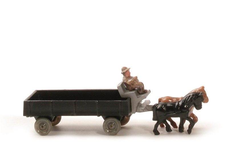 Räder | Drahtachser | Pritschentyp | ohne Querverbretterung | Farbe Pritsche | schwarz | Deichselrest | mit | Pritschenboden | glatt | Zughaken | integriert, nach unten | Deichsel/Kutschbock | silbern | Quersteg Deichsel | mit | Farbe linkes Pferd | mischbraun meliert | Farbe rechtes Pferd | schwarz | Kutscher Typ | Hut | Kutscher Farbe | misch braun gold | Kutscher Bemalung | Gesicht | Räder | glasiges basaltgrau |