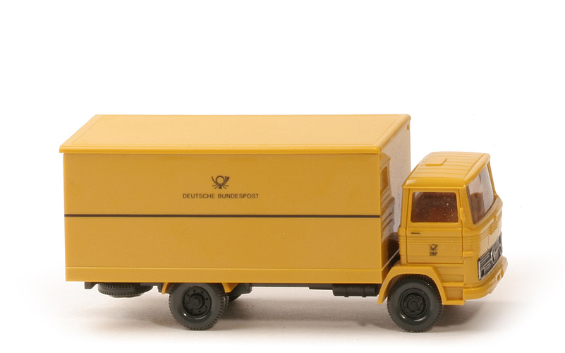 Farbe Kabine | honiggelb | Spiegel | mit | Verglasung | leicht getönt | Grill | schwarz eingesetzt, Grillumrandung, Zierlinien, Stern silber | Bemalung vorne | ohne | Inneneinrichtung | ohne | Bedruckung Türen | Türgriffe, stilisieres Posthorn, "DBP" schwarz | Chassis Farbe | schwarz | Chassis Bodenprägung | neues WIKING-Logo | Zughaken | Mikro-Zughaken | Reserverad | hinten unter Chassis gesteckt | hinterer Kotflügel | honiggelb | Bemalung Rückleuchten | ohne | Aufbau Typ | hoher Koffer | Farbe Koffer | honiggelb | Farbe Türen | honiggelb | Farbe Kofferdach | honiggelb | Koffer Bodenprägung | ohne | Beschriftung | Posthorn, "Deutsche Bundepost", schwarzer Streifen | Räder | 11mm, Felge eingesetzt | Felgenfarbe | 6-Loch, schwarz | | Anhänger | Ausführung | Farben, Räder, Bedruckung wie Zugwagen |