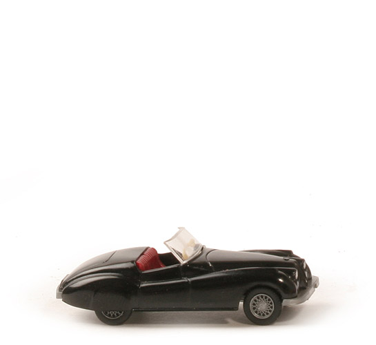 Windschutzscheibe | gerundet, Spritzteil | Farbe Karosserie | schwarz | Grill | 6 Streben (Grill fein) | Trittbretter | mit | hintere Stoßstange | Teil des Chassis | Lenkrad | separat eingesetzt, 3-speichig, creme | Sitze | separat eingesetzt, rubinrot | Figuren | ohne | Chassisfarbe | silbern | Achshalterung | offen | Bodenprägung | Jaguar-Sport, WIKING Germany, 20 | Schlepploch | ohne | Zughaken | ohne | Bemalung vorn | Scheinwerfer silbern | Bemalung hinten | ohne | Räder | schwarz, Felgen eingesetzt | Felgen | Speichenräder silbern |