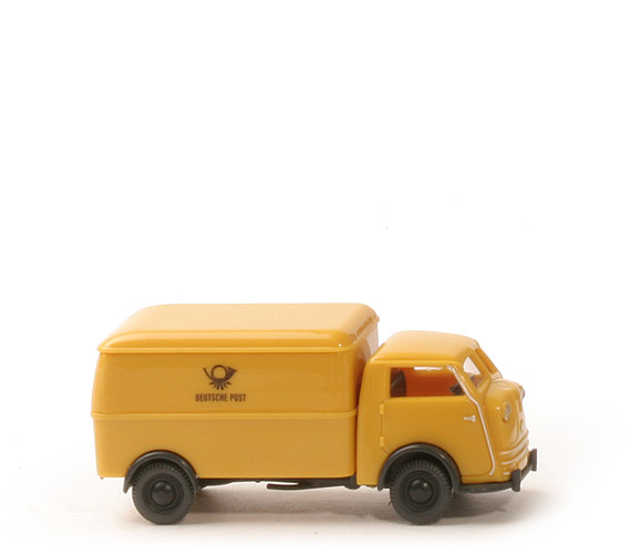 Kabine | "honiggelb" | Scheinwerfer | klar transparent eingesetzt | Bedruckung Typkennung | "Tempo" und "Matador" silbern | Bedruckung Scheinwerferrand | silbern | Bedruckung Zierlinien | silbern | Bedruckung Türgriffe | silbern | Verglasung | klar | Inneneinrichtung | schwarz | Lenkrad | separat, schwarz | Chassis | schwarz | Bodenprägung | neues WIKING-Logo | Kasten Dach | "honiggelb" | Kasten oben | "honiggelb" | Kasten unten | "honiggelb" | Beschriftung Kasten oben | Posthorn, "Deutsche Post" | Bemalung Rückleuchten | rot | Räder | 8 mm, Naben schwarz | Radkappen | schwarz |