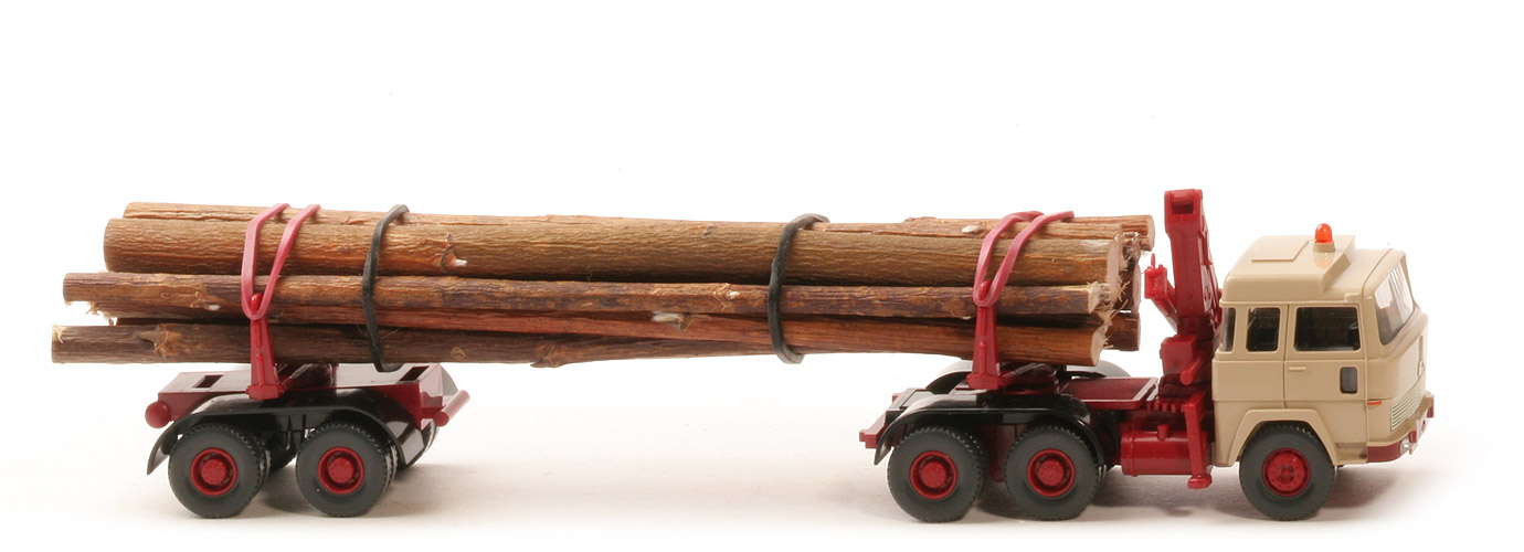 Zehnte Edition aus dem "kleinen WIKING-Laden" von Michi Bloeßl. Früher gab es keinen 5-achsigen Langholztransporter. Hübsches Modell mit Echtholzbeladung, dass das Thema des großen Holz- transporters der MAN-Pausbacke (Edition 3) wieder aufnimmt.
