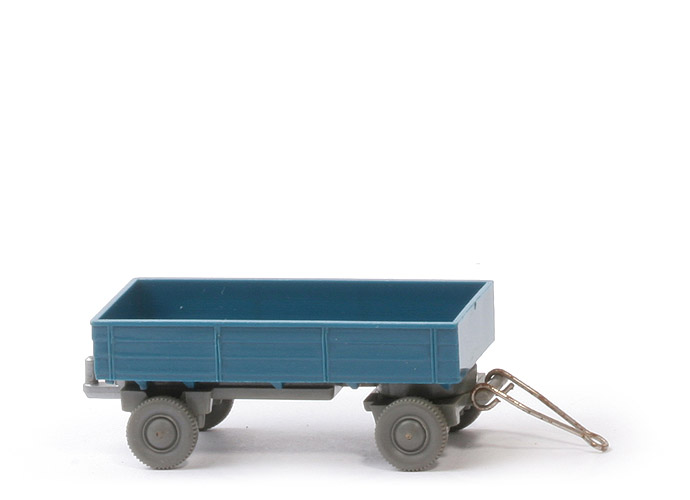 | | Pritsche | | Pritsche Farbe | azurblau | | Pritschenseiten | mit Struktur | | Pritscheneinlage | ohne | | Kennzeichen hinten | zweiteilig | | | Chassis | | Chassis Variante | Typ 2 | | Chassis Farbe | dunkler als platingrau | | Achshalterungen | offen | | Drehschemel | eingesteckt | | Bodenprägung Drehschemel | WM | | Bodenprägung Chassis | ohne | | Zughaken | silbern, Typ LKW, unter Chassis geklebt | | | weitere Details | | Deichsel | Metall | | Bemalung Rückleuchten | ohne | | Bemalung Kennzeichen | ohne | | Räder | 10 mm, staubgrau, neuere Ausführung |