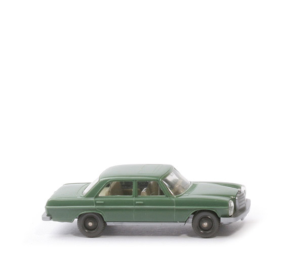 | Farbe Karosserie | diamantgrün | | Stahlschiebedach | mit | | Markierung Bereich Taxi-Schild | mit | | Scheinwerfer | transparent eingesetzt | | Grill | silbern, Teil des Chassis | | Verglasung | klar | | Inneneinrichtung | ca. hellelfenbein | | Lenkrad | eingesetzt, ca. perlweiß, 2-speichig | | Chassis Farbe | silbern | | Bodenprägung | Mercedes 200, Wiking Germany | | Bemalung | ohne | | Räder Typ | Riffelkappe | | Räder Farbe | anthrazit | | Felgen | ungesilbert |