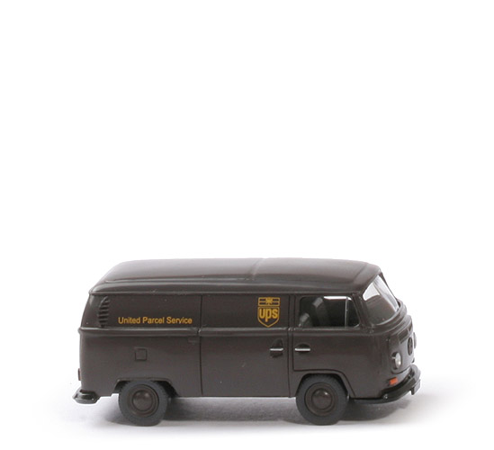 Karosserie | schwarzbraun | Türgriffe | erhaben, silbern bedruckt | Verglasung | klar | Lenkrad | separiert | Inneneinrichtung | anthrazit | Bedruckung VW-Emblem | schwarz | Bedruckung Scheinwerfer | silbern | Bedruckung Blinker vorne | orange | Bemalung Rückleuchten | rot | Beschriftung | "United Parcel Service", UPS Logo | Beschriftung Art | Druck | Chassisfarbe | schwarz | Bodenprägung | neues WIKING-Logo, Germany | Räder Typ | 8 mm | Radkappen | eingesetzte gewölbte Radkappe mit VW-Logo schwarzbraun |