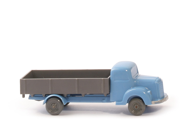 Achsen | Rollachser | Farbe Kabine u. Chassis | lilablau | Kabinenboden | offen, Bodenprägung WM im Kreis | Bemalung Kabine | Scheinwerfer, Stoßstange | Pritsche | Seiten glatt | Farbe Pritsche | basaltgrau | Zughaken | nach unten | Zapfen | Rundzapfen | Befestigung Pritsche | gesteckt | Räder | 10mm, ohne Profil basaltgrau |