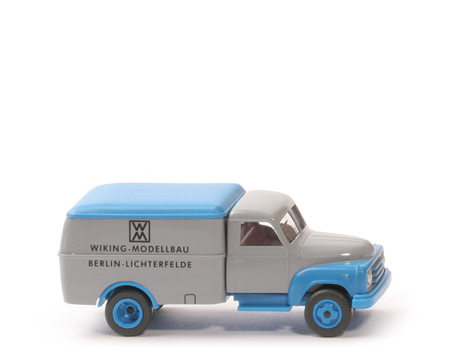 Kabine | silbergrau, Kotflügel himmelblau schabloniert | Verglasung | klar | Inneneinrichtung | ca. basaltgrau, Lkr separat ca. basaltgrau | Bedruckung Front | Scheinwerfer, "Hanomag" silbern, Grillstreben himmelblau | Chassis Farbe | himmelblau | Bodenprägung | neues WIKING-Logo, Germany | Kofferdach | himmelblau | Koffer oben | silbergrau | Koffer unten | silbergrau | Rückleuchten | links und rechts, unbemalt | Nummernschild hinten | unbemalt | Beschriftung | WM-Logo, "WIKING-Modellbau, Berlin-Lichterfelde" | Beschriftung hinten | WM-Logo | Ladung | ohne | Räder Typ | 9 mm, 2-teilig | Felgen | 4-Stern, himmelblau |