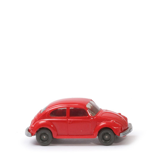 Dieser Käfer in richtigem Rot ist recht selten. Offenbar gab es dieses Modell nur als Ladegut. Ladegut typische Ausführung recht schmucklos: keine Silberung der Scheinwerfer, keine Silberung der Felgen, keine Inneneinrichtung. Da dieses Modell keine Inneneinrichtung besitzt, kann keine Zuordnung wie bei Herrn Saure Lenkrad separat/integriert erfolgen. |