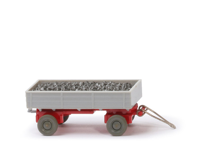 | Pritsche | Pritsche Farbe | silbergrau | Pritschenseiten | mit Struktur | Pritscheneinlage | ohne | Kennzeichen hinten | einteilig | | Chassis | Chassis Variante | Typ 2 | Chassis Farbe | rot | Achshalterungen | offen | Drehschemel | eingesteckt | Bodenprägung Drehschemel | WM | Bodenprägung Chassis | ohne | Zughaken | silbern, Typ LKW, unter Chassis geklebt | | weitere Details | Deichsel | Metall, lang | Ladung | Kohlen, anthrazit | Bemalung Rückleuchten | ohne | Bemalung Kennzeichen | ohne | Räder | 11 mm, Nabe glatt |