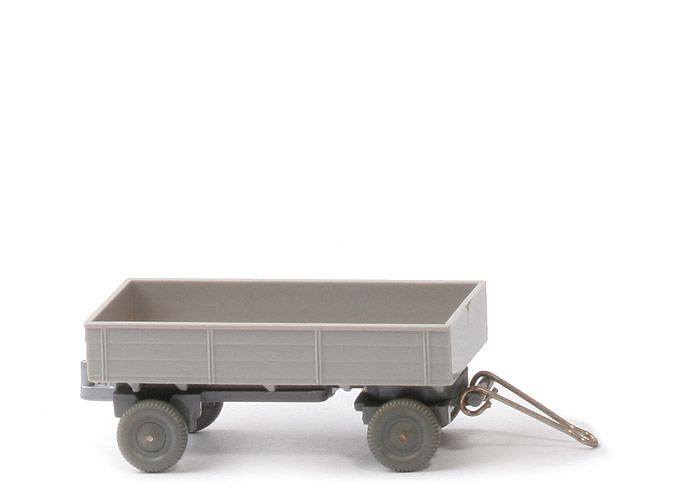 | Pritsche | Pritsche Farbe | dunkelsilbergrau | Pritschenseiten | Struktur | Pritscheneinlage | ohne | Kennzeichen hinten | zweiteilig | | Chassis | Chassis Farbe | basaltgrau | Chassis Variante | Typ 1 | Achshalterungen | geschlossen | Drehschemel | vernietet | Bodenprägung Drehschemel | ohne | Bodenprägung Chassis | ohne | Zughaken | silbern, eingesetzt in Chassisschlitz | | weitere Details | Deichsel | Metall | Bemalung Rückleuchten | rot | Bemalung Kennzeichen | silbern | Räder | 10 mm, mit Profil, betongrau, älterer Typ |