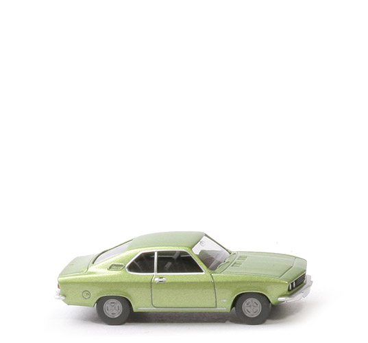 Karosserie | "hellgrün metallic" lackiert | Scheibenwischer | plastisch | Verglasung | klar | Armaturenbrett | schwarz | Lenkrad | schwarz, Lenkrad separiert | Inneneinrichtung | schwarz | Grill | schwarz eingesetzt, Opel Logo silbern | Scheinwerfer | gesilbert | Rückleuchten | rottransparent eingesetzt | Stoßstangen | separat eingesetzt, gesilbert | Chassis | schwarz | Bodenprägung | neues WIKING-Logo, Germany | Räder | 8 mm | Felgen | typgerecht, silbern |