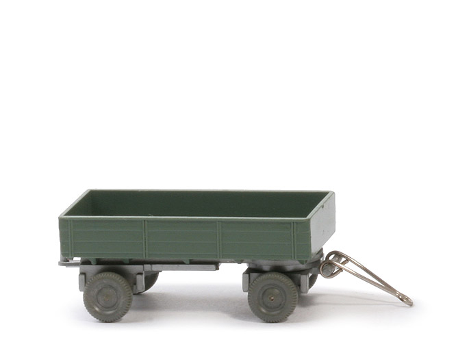 | | Pritsche | | Pritsche Farbe | dunkelresedagrün | | Pritschenseiten | mit Struktur | | Pritscheneinlage | ohne | | Kennzeichen hinten | zweiteilig | | | Chassis | | Chassis Variante | Typ 2 | | Chassis Farbe | silbern | | Achshalterungen | offen | | Drehschemel | eingesteckt | | Bodenprägung Drehschemel | WM | | Bodenprägung Chassis | ohne | | Zughaken | silbern, Typ LKW, unter Chassis geklebt | | | weitere Details | | Deichsel | Metall | | Bemalung Rückleuchten | rot | | Bemalung Kennzeichen | silbern | | Räder | 10 mm, staubgrau, ältere Ausführung |