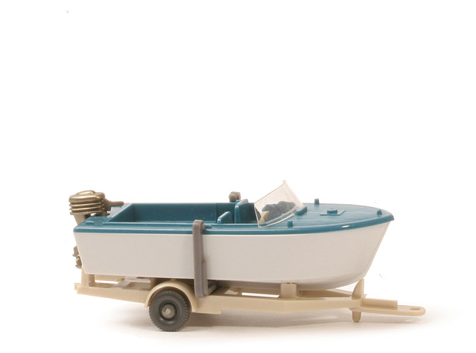 | Boot | Bootoberseite | azurblau | Vordersitze | mit Verbindungssteg ohne Nippel | Windschutzscheibe | flach (ca. 6 mm hoch) | Lenkrad | ca. hellelfenbein, 3-speichig | Fußraum (Deck) | silbern | hier Prägung | WM | Außenborder | goldmetallic | Rumpf | altweiß | | Anhänger | Farbe | ca. hellelfenbein | Version | Typ 2 (mit Schlitz für Kunststoffhalterung) | Nestkennung | "2" | Bodenprägung | Wiking Germany | Befestigung Boot | per Kunststoffhalterung - ca. basaltgrau | Räder | anthrazit, Nabe glatt |