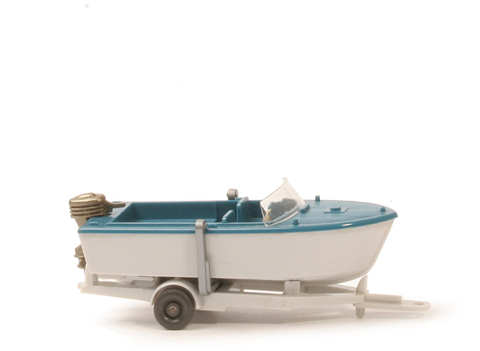 | Boot | Bootoberseite | azurblau | Vordersitze | mit Verbindungssteg ohne Nippel | Windschutzscheibe | flach (ca. 6 mm hoch) | Lenkrad | ca. hellelfenbein, 3-speichig | Fußraum (Deck) | silbern | hier Prägung | WM | Außenborder | goldmetallic | Rumpf | altweiß | | Anhänger | Farbe | ca. altweiß | Version | Typ 2 (mit Schlitz für Kunststoffhalterung) | Nestkennung | "1" | Bodenprägung | Wiking Germany | Befestigung Boot | per Kunststoffhalterung - silbern | Räder | anthrazit, Nabe glatt |
