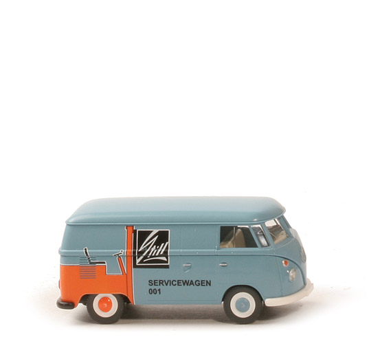 Modell für Still anlässlich 100-Jahr-Feier in Podestschachtel "A History of Future - since 1920". Tür- und Haubengriffe gesilbert, am Heck "Volkswagen" in silber. Mit der Darstellung eines stilisierten Gabelstaplers sehr eng an ein auf der Verpackung abgebildetetes Original-Fahrzeug angelehnt. Sehr schön! |