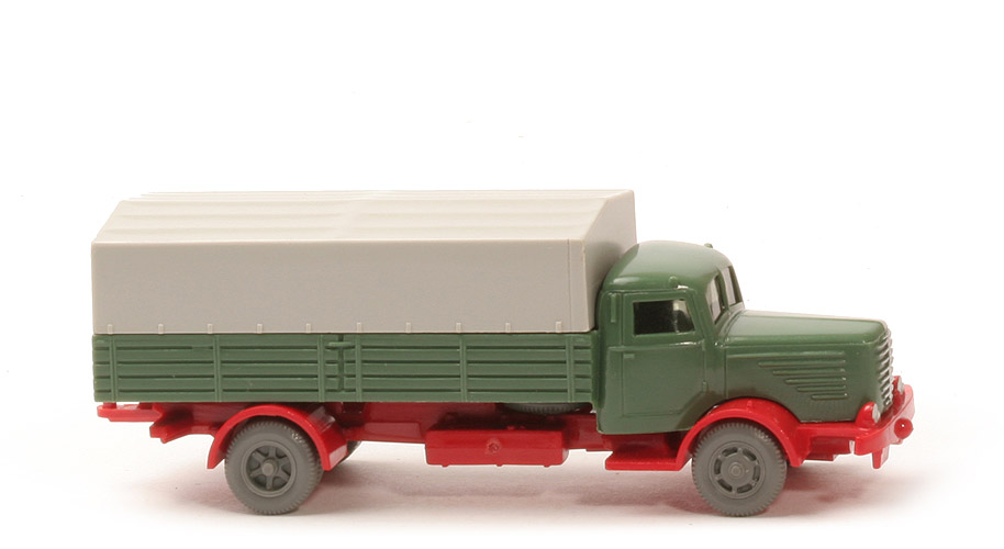 Kabine Farbe und Pritsche | diamantgrün | Blinker | mit | Bemalung Scheinwerfer, Grill | silbern | Bemalung Kennzeichen | ohne | Positionsleuchten | mit | Warndreieck | ohne | Pritschenboden | grob strukturiert | Pritschenrückseite | Struktur wie Seite | Chassis | Version 4 | Farbe Chassis | rot | Vorderachshalterung | mit Steggravur | Chassis Bereich Trittbretter | offen | Bodenprägung Verteilergetriebe | WM | hintere Achshalterung | offen | Auspuff | zur Beifahrerseite | Zughaken | ca. 3,5mm lang, 1,9mm stark | Rücklichtstange Beifahrerseite | mit | Bodenprägung hinten | ohne | Reserverad | vorne unter Pritsche | Bemalung Kennzeichen | ohne | Rückleuchte | mit, unbemalt | Plane | ca. lichtgrau | Räder | Trilex mit Profil hellgrau |