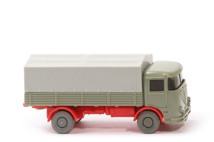 | Aufbau | Typ 2, hellgraugrün | | Blinker | ohne | | Verglasung Art | Typ 3: oben geschlossen | | Verglasung Tönung | stark getönt | | Fahrer | ohne | | Sitze | orangerot | | Bemalung Hauptscheinwerfer | silbern | | Bemalung Zusatzscheinwerfer | silbern | | Bemalung Büssing-Spinne | ohne | | Bemalung Stoßstange | silbern | | Bemalung Kennzeichen vorne | silbern | | Bemalung Überblick | Version 3 | | Chassis | Version 3, orangerot | | Chassis Gestaltung hinten | geschlossen | | Bodenprägung | WM | | Achshalterung vorne | separates Bauteil mit Lenkgetriebe | | Achshalterung hinten | offen | | Bemalung Rückleuchten | ohne | | Bemalung Kennzeichen hinten | ohne | | Verdeck | ca. lichtgrau | | Räder | 11 mm, glatt, ca. basaltgrau |