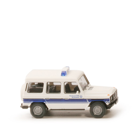 Lechtoys Edition 28 in Podestschachtel "Technisches Hilfswerk (THW) - MB 280 G". Auflage ca. 500. Unglaublich detaillierte Bedruckung! Warnlichtbalken vorne "WHT", hinten "THW", Vordertüren "Technisches Hilfswerk", THW Logo, Reserverad "THW". Umlaufender Streifen in ultramarin. Blinker orange, Rückleuchten rot. Scheinwerfer, MB-Stern silbern. Fensterrahmen, Lüftergitter, Scheiben- wischer schwarz. |
