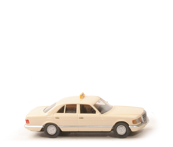 Lechtoys Edition 13 in Podestschachtel "Mercedes-Benz 350 SE Limousine (w126) Limousine Taxi". Auflage 500. Hübsch bedruckt am Heck der Stern und "350 SE". |
