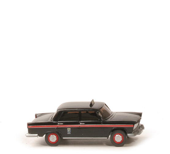 Farbe | schwarz | Taxi-Schild | durchgesteckt, schwarz, Druck "Taxi" gelb | Schablonierung | roter Streifen silbern gefasst | Verglasung | stark getönt | Inneneinrichtung | ohne | Chassisfarbe | silbern | Nestnummer Chassis | 2 | Bodenprägung | nur neues WIKING-Logo | Bemalung Scheinwerfer | silbern | Bemalung Grill | silbern | Bemalung Rückleuchten | rot | Bedruckung Zierlinien, Griffe | silbern | Heckdruck | "Seat 1500" in silbern | Druck Türen hinten | Logo weiß/blau/gelb, "1965" weiß | Räder Farbe | zweiteilig 7,2 mm mit Radmutterkranz | Felgen | rot, Radkappen silbern |