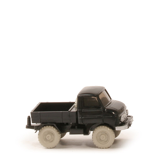 Farbe Kabine | schwarz | Version Kabine | Dach runde Gravur | Grill | integriert, silbern bedruckt | Verglasung | stark getönt | Inneneinrichtung | ohne | Stoßstange | gesilbert | Aufnahme Räumschild | mit Kragen | Chassis Farbe | schwarz | Chassis Version | im Bereich der Hinterachse geschlossen | Kardanelement Farbe | schwarz | Bodenprägung | neues WIKING-Logo, Germany | Reserverad | hinter Kabine | Pritsche | schwarz | Pritscheneinsatz | ohne | Räder | 10 mm, grobstollig | Farbe Räder | ca. grauweiß |